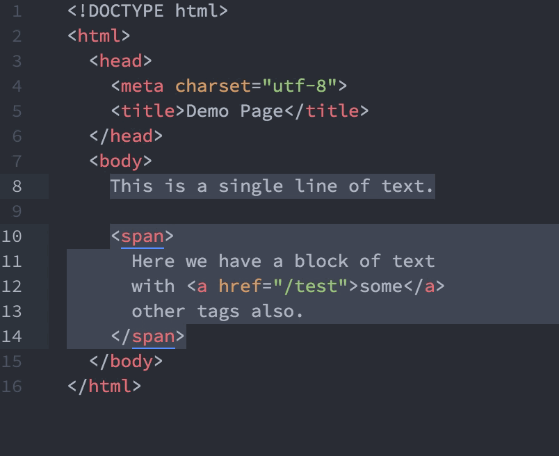 Snippets are an incredibly powerful way to quickly generate commonly needed code syntax from a shortcut. Mnquintana added the enhancement label on may 16, 2015. I used to use brackets and sublime before and they both had a feature where you could create the basic structure of a html documents by just typing html. Many core and community packages come bundled with their own snippets that are specific to it. .php,.js,.jsx,.md etc.) as long as the word you are executing it on is a valid html tag(e.g.. Created the charset meta, title and link to css file.